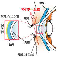 最近ではドライアイ症状を訴える患者さんの80%以上はMGDによる、油分が足りないことが原因であるとわかっています。
